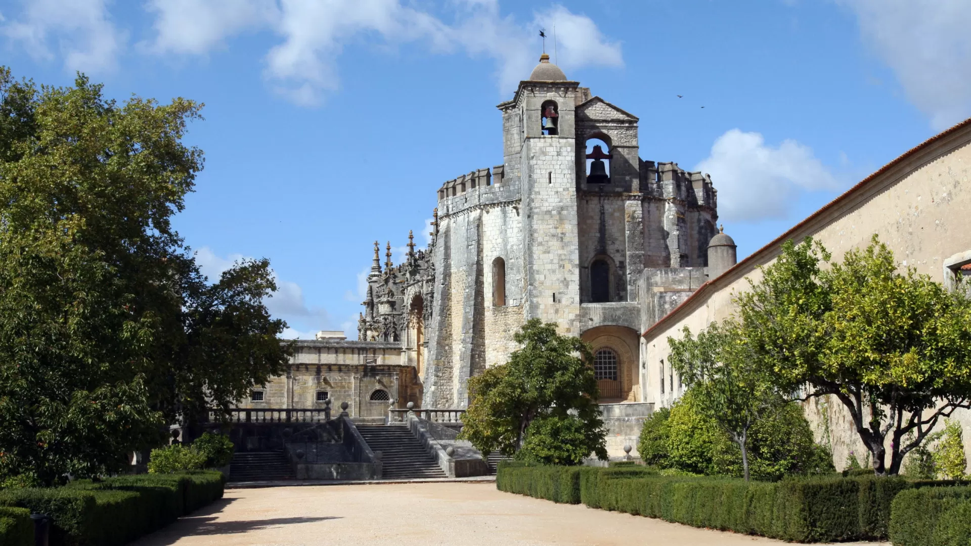 O Castelo do Convento de Cristo, construído no século XII, é um dos pontos mais altos do complexo e oferece uma vista privilegiada da cidade de Tomar. Com suas muralhas imponentes e sua arquitetura militar, o castelo é um testemunho da importância estratégica do convento ao longo dos séculos. A empreitada de reabilitação inclui a restauração das muralhas e a recuperação de elementos arquitetônicos que estavam em risco de desaparecer.