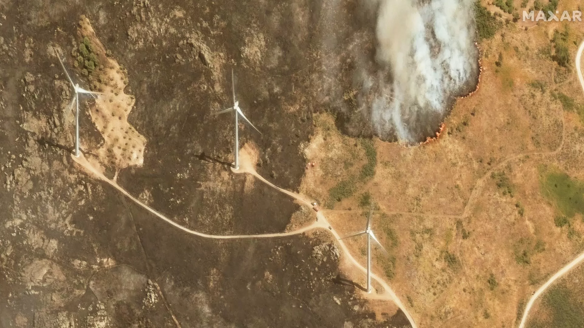 No dia 12 de agosto, uma imagem preocupante foi captada no município de Trancoso, distrito da Guarda, em Portugal. Uma parte do parque eólico localizado próximo à povoação de Freches estava sendo atingida por um incêndio.