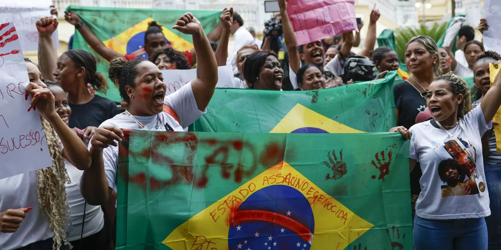 Entre os manifestantes, estavam mães de vítimas da operação, que questionavam a ação policial e pediam por justiça. “Não é possível que esse governador não seja responsabilizado por tantas vidas. Ou nós já temos pena de morte no país? O que aconteceu dentro da comunidade foi um genocídio. Toda véspera de eleição, tem uma estratégia de entrar nas nossas comunidades, matar o nosso povo e causar o terror”, disse Rute Sales, moradora da região e ativista negra.