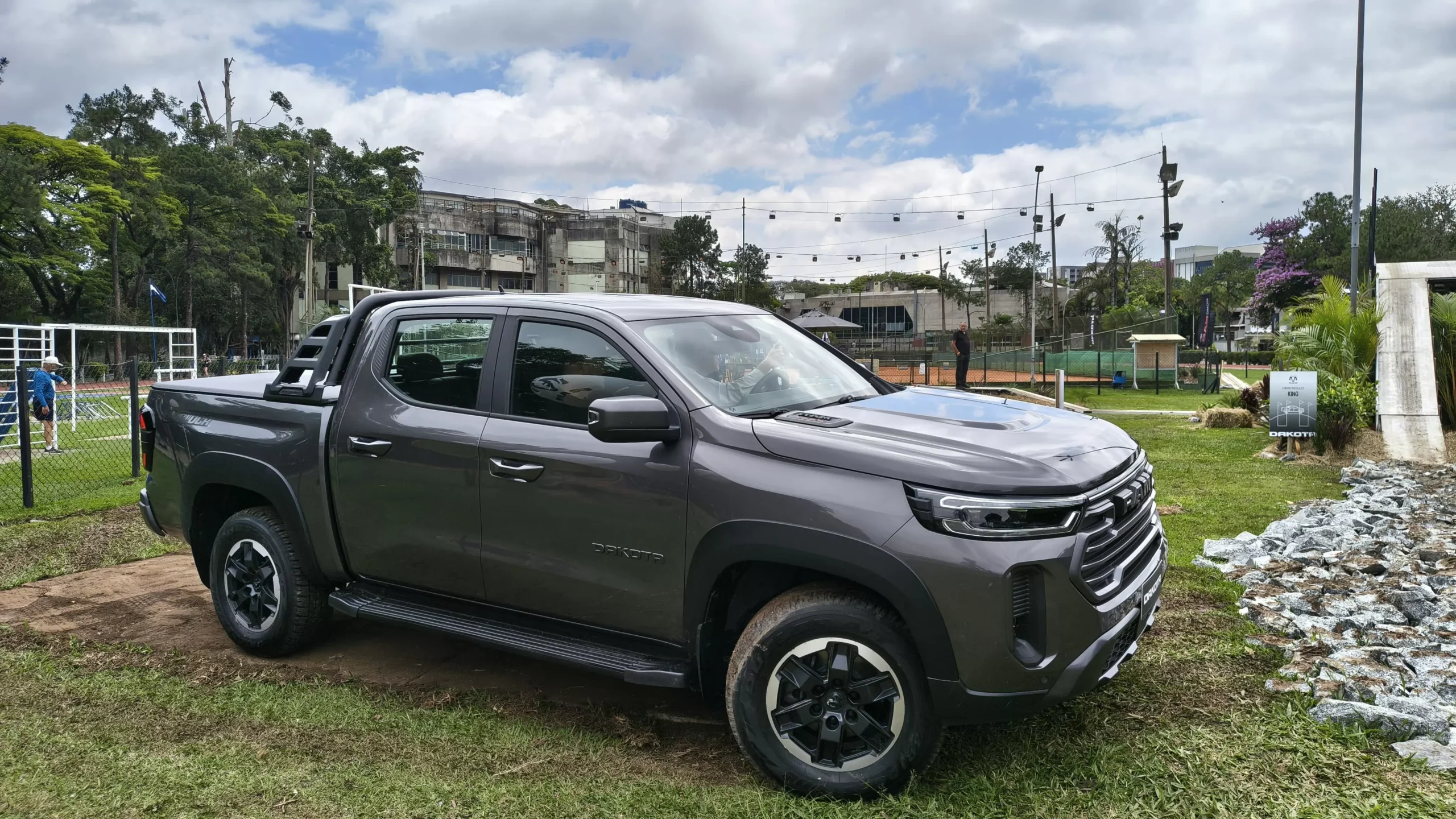 A primeira impressão que tivemos ao nos aproximarmos da caminhonete foi de imponência. Seu design moderno e robusto chamou a atenção de todos ao redor. A grade frontal cromada, os faróis de LED e as linhas bem definidas dão um ar de sofisticação e tecnologia ao veículo. Sem dúvidas, será um destaque por onde passar.